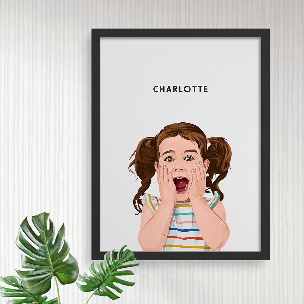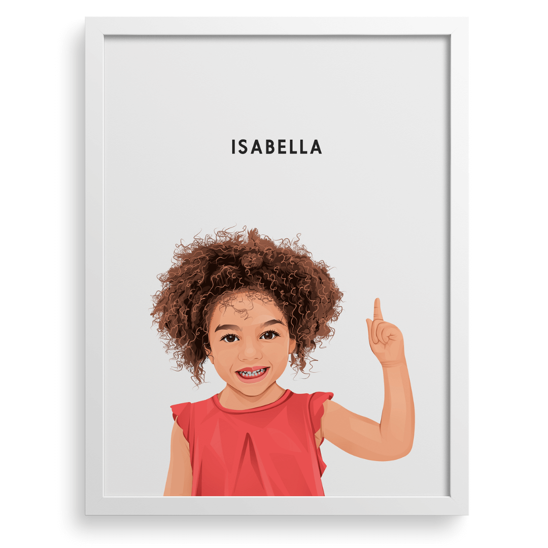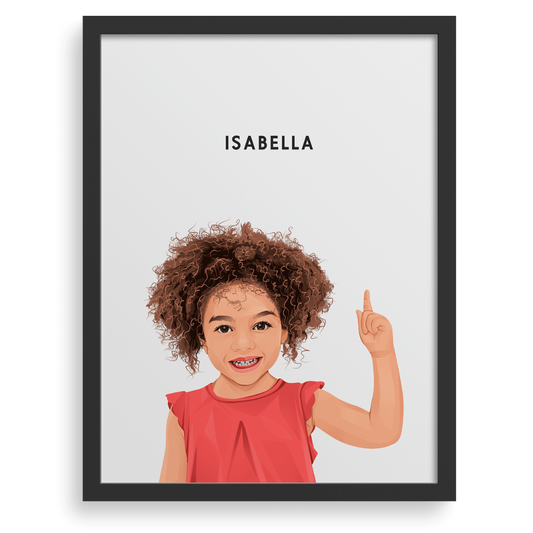 Transform a precious moment into a custom illustrated portrait! Smirky's custom baby & kid portraits are digitally-illustrated by our talented artists and expertly printed on museum-quality paper that will give your art a polished and professional look. 1" hardwood frames come in a variety of sizes and ready-to-hang.