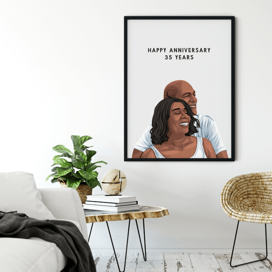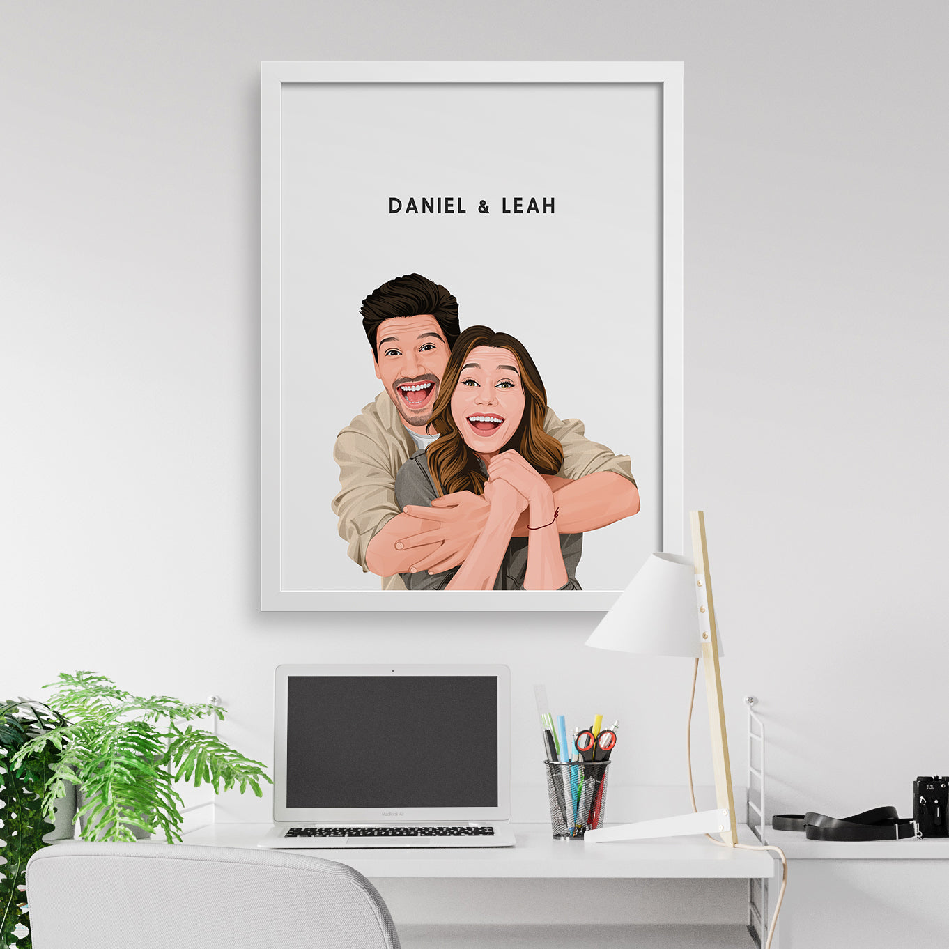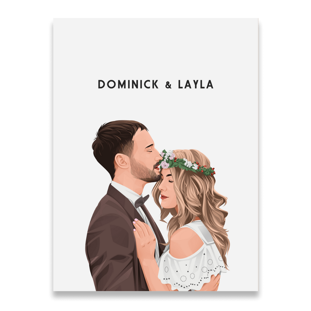Transform a precious moment into a custom illustrated portrait! Smirky's custom wedding & anniversary portraits are digitally-illustrated by our talented artists and expertly printed on museum-quality paper that will give your art a polished and professional look. 1" hardwood frames come in a variety of sizes and ready-to-hang.