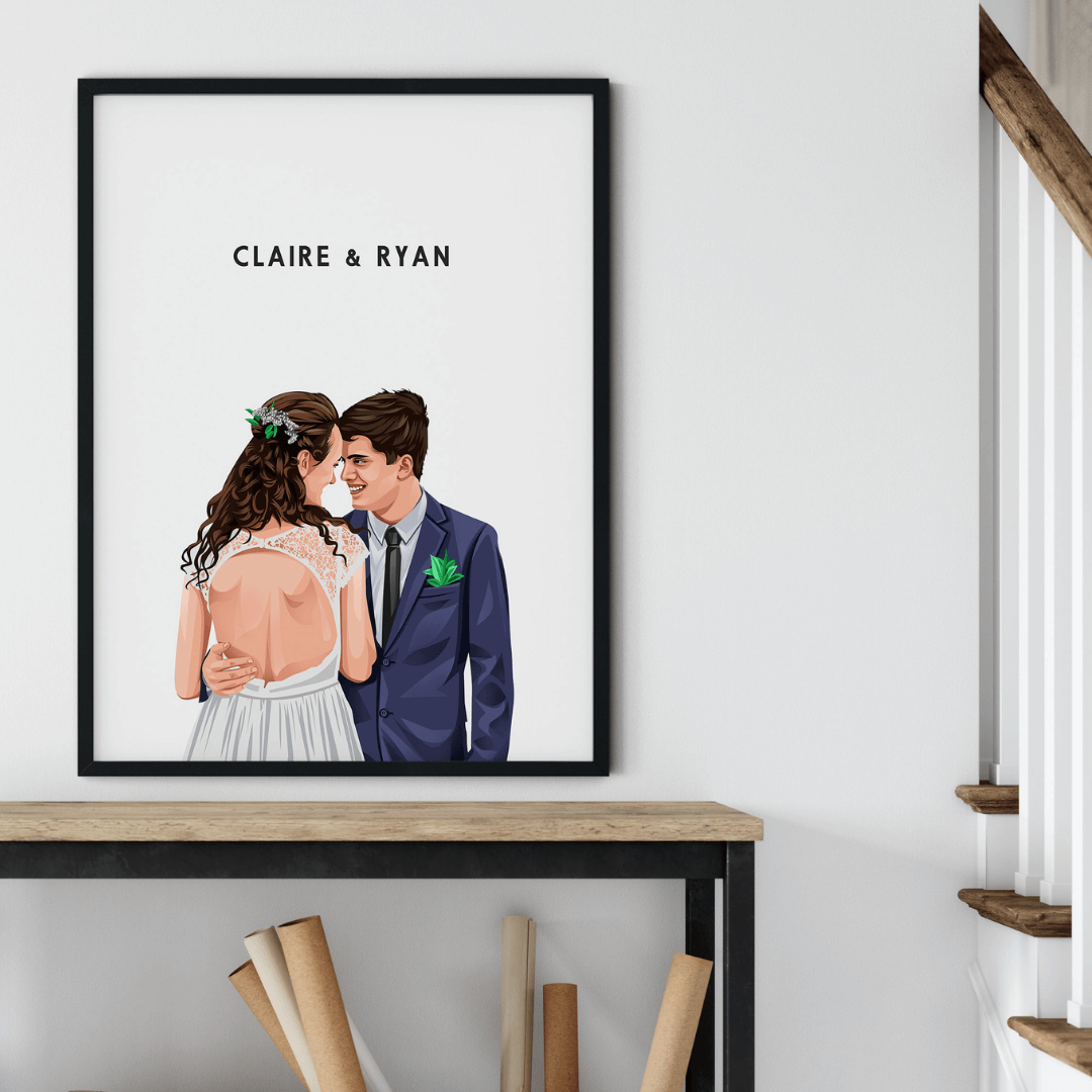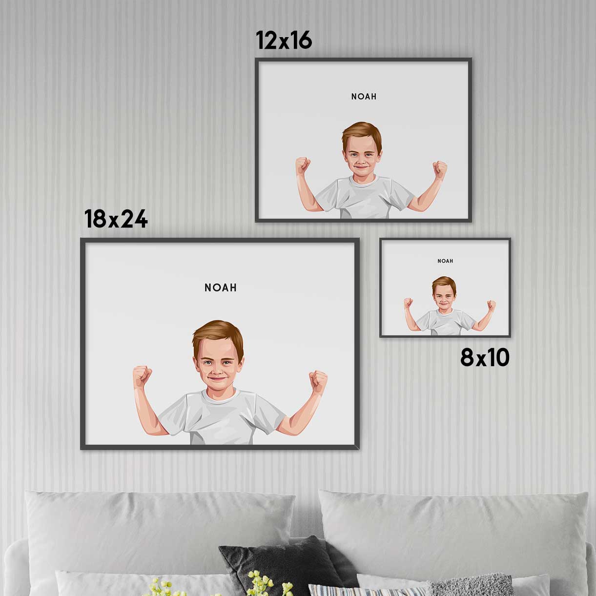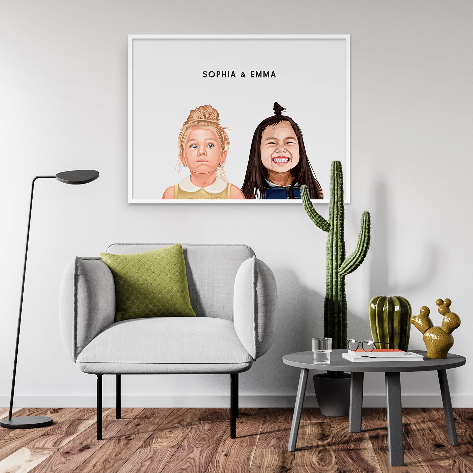Transform a precious moment into a custom illustrated portrait! Smirky's custom illustrated family portraits are digitally-illustrated by our talented artists and expertly printed on museum-quality paper that will give your art a polished and professional look. 1" hardwood frames come in a variety of sizes and ready-to-hang. Here's some inspiration: