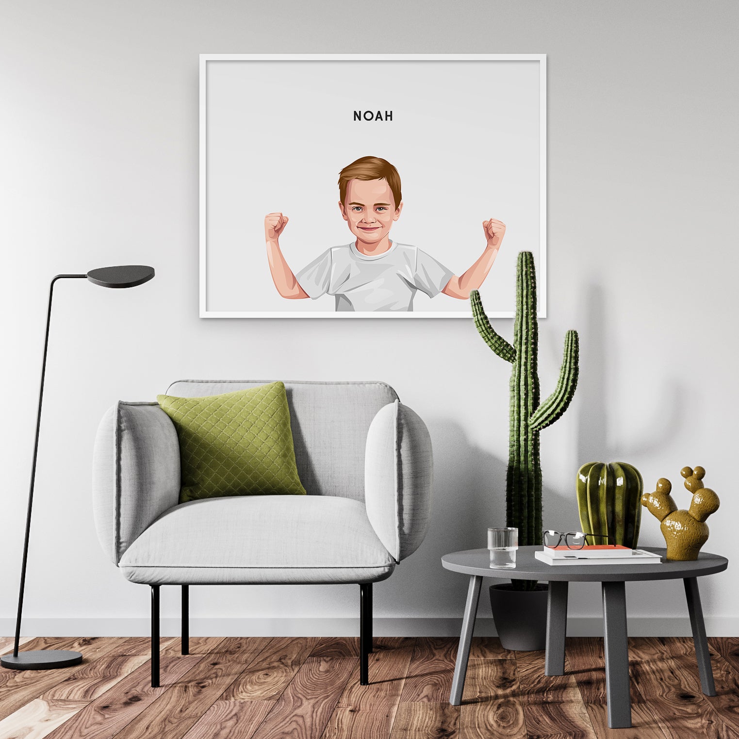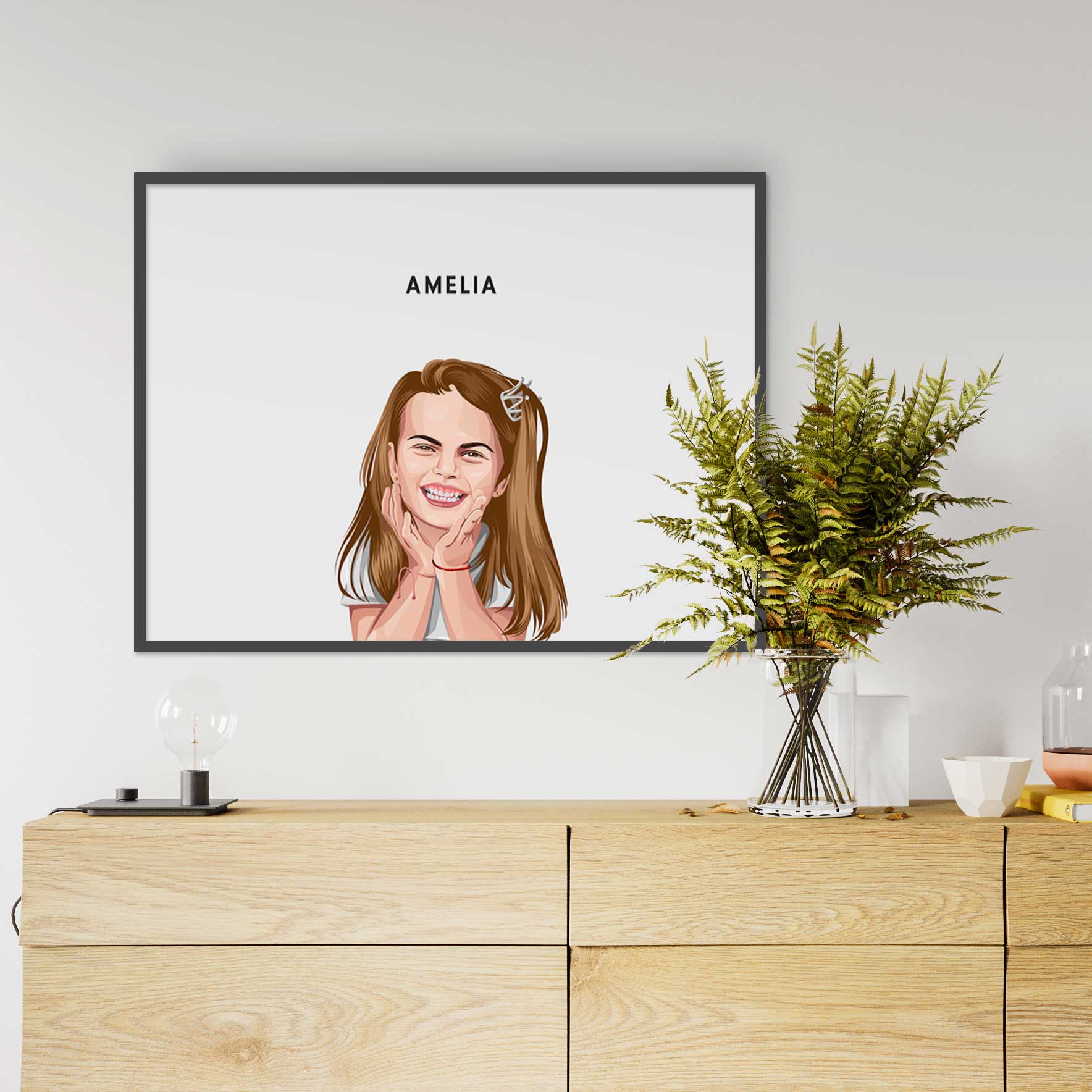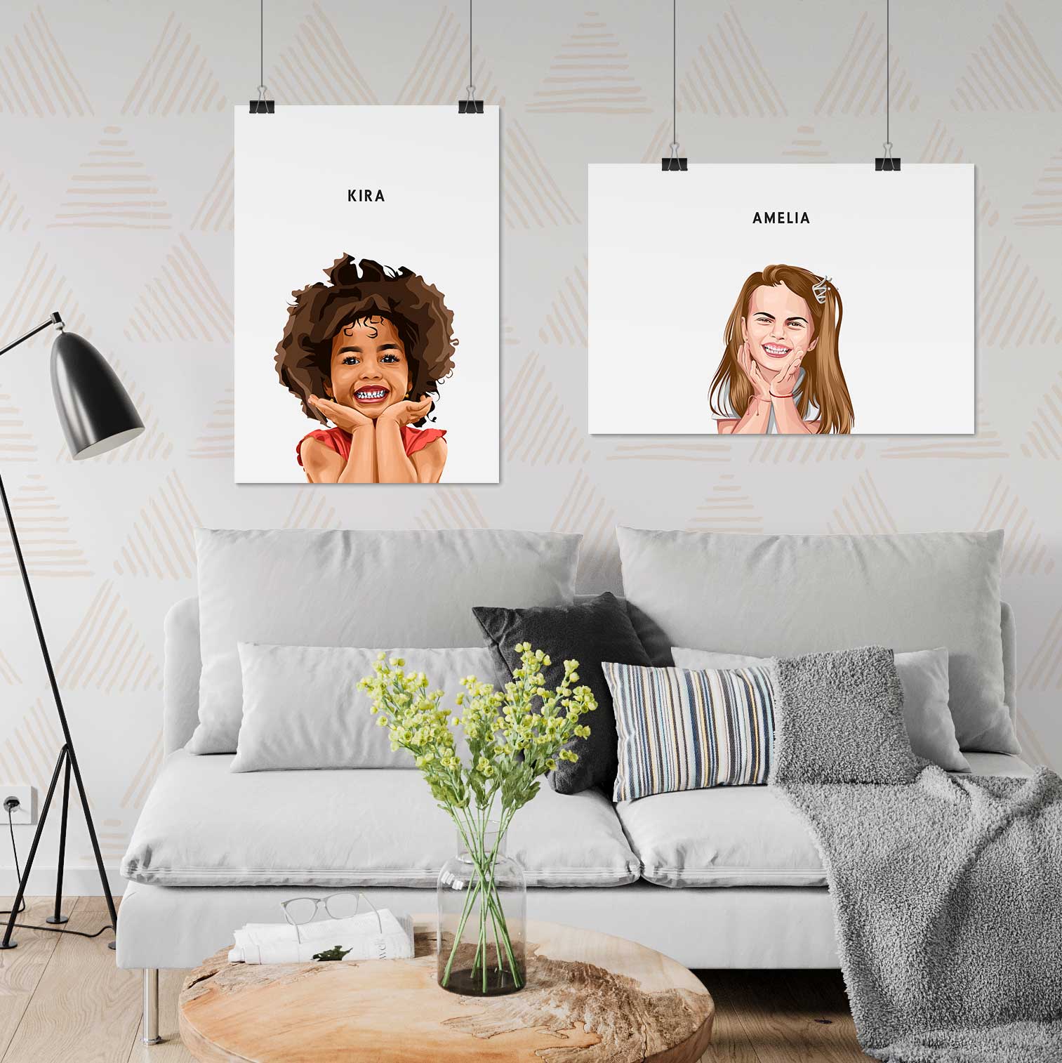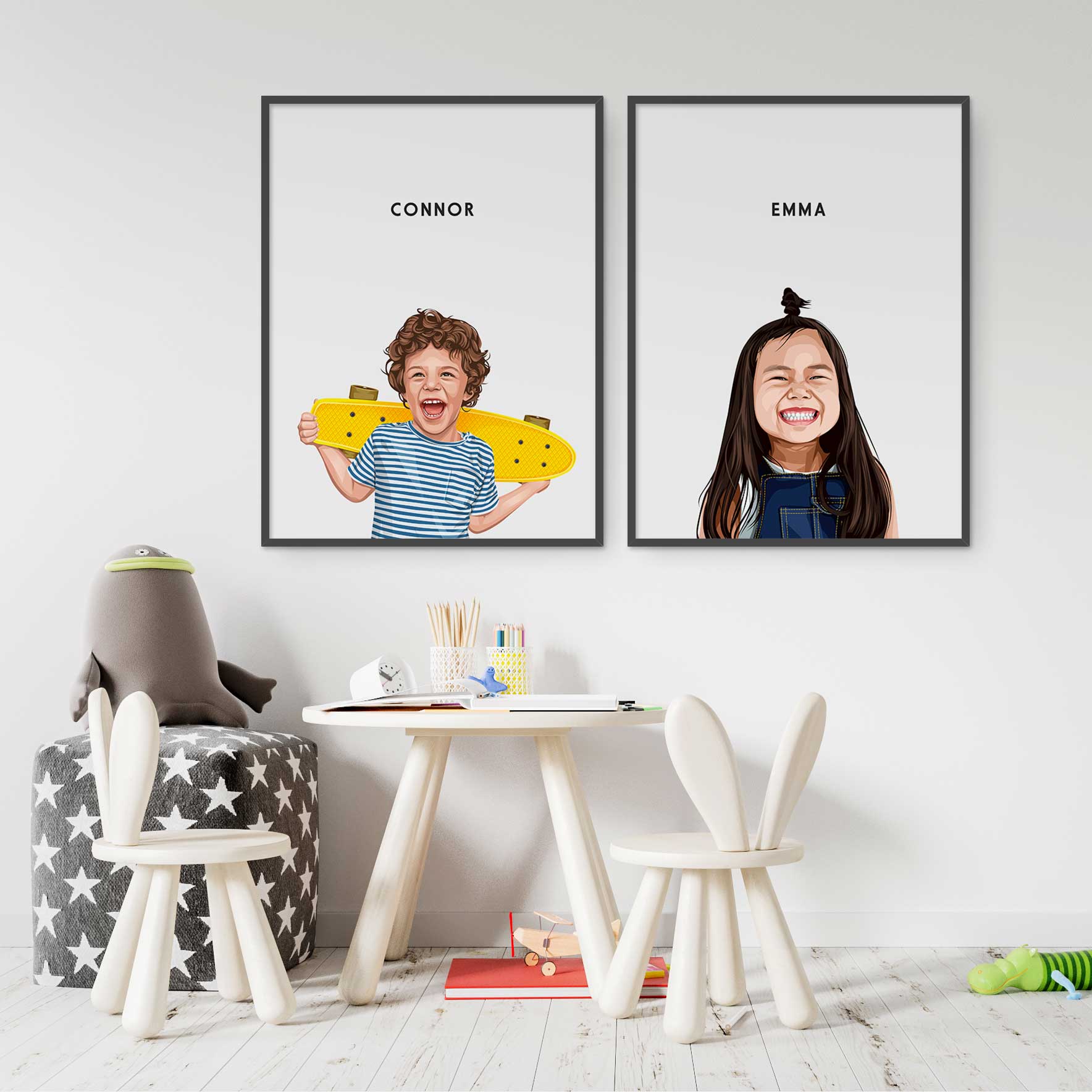 Transform a precious moment into a custom illustrated portrait! Smirky's custom illustrated family portraits are digitally-illustrated by our talented artists and expertly printed on museum-quality paper that will give your art a polished and professional look. 1" hardwood frames come in a variety of sizes and ready-to-hang. Here's some inspiration:
